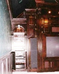 The cabinet below that has pullout speakers for rear firing subwoofers. The speakers can be pushed back and hidden behind closed doors when not in use, so it looks as good as it performs. |