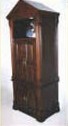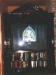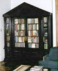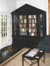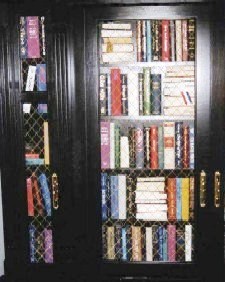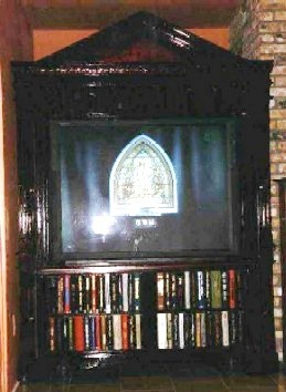 ![]() TV behind pocket doors of cut off books behind a diagonal brass grill. |