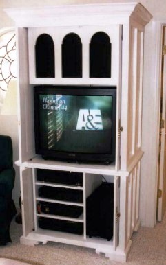 That way you can hide all that equipment (even speakers) and still be able to control everything even when it is behind closed doors. See Audio/Video Systems for more information. We can also incorporate space to store all your CDs, DVDs and VCR tapes on pullout racks for easy access. No more clutter and mess (everything organized). |
