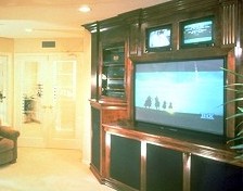 installation with no messy wires showing (can also hide equipment) Easy operation of systems Add to or update your existing equipment, speakers, cabling, etc. Design and install a new stand-alone system or a whole house system Digital Dolby ProLogic, AC3 or THX Surround Sound like at the movies Music throughout the home with in-wall or in-ceiling speakers individual control in each room TV lifts out of furniture or painting slides to reveal TV hidden in wall Fantastic outside music with bass In-wall volume controls, control panels or electronic eyes for control per room Hide equipment out of sight in a closet or cabinetry and easily operate with a simple control system Universal remotes with touch screens, eliminating the clutter of all those complicated remotes High Definition TV and High Definition Satellite for unbelievable picture Multiple satellite receivers off one dish Digital satellite music channels by type (36 types) of music with no commercials Multiline Telephone with intercom |