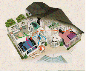 add Netflix, Pandora and other applications. We can hide the equipment out of sight in a cabinet or closet (you can still operate it with a simple control system). Or we can use stylish European components that look like works of art that you will want to showcase. We can also install surveillance cameras that can be viewed on all TVs by going to a specific channel number. We can put music throughout the house, outside on the patio or at the pool. We can do outside music that sounds great using in-ground subwoofers. It's perfect for relaxing as well as entertaining (without disturbing the neighbors). We can install in-wall or in-ceiling speakers that can be painted to match and virtually disappear. We can install individual controls in each room and outside. We are skilled on all the latest cabling, power protection and control systems. We can prewire your new home (for now and the future) or retrofit your existing home. We